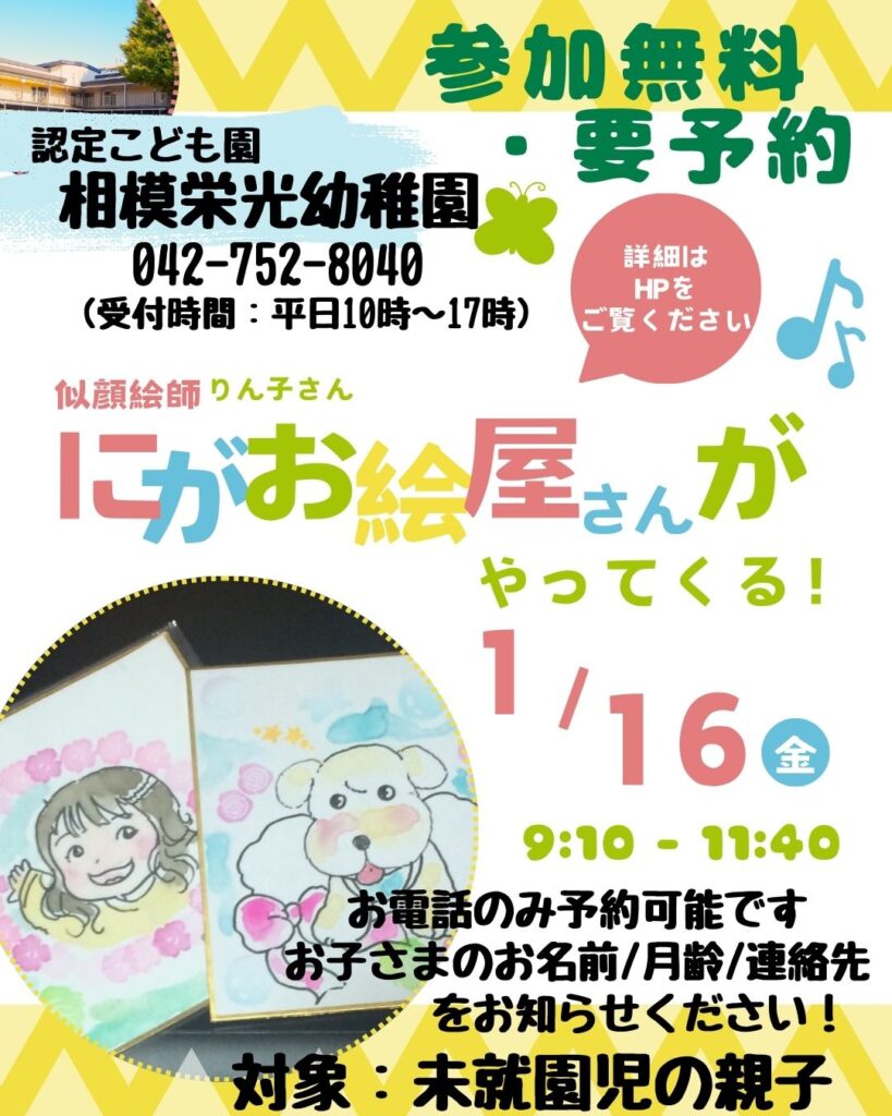 前回大好評だった似顔絵屋さんが、また幼稚園に遊びにきてくれます。